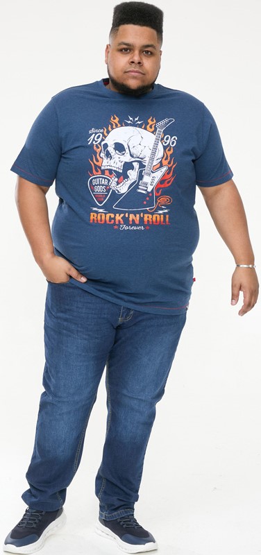 Størrelsesguide - D555 NEAL Skull With Flames Printed Crew Neck T-Shirt Navy/Blue Twist