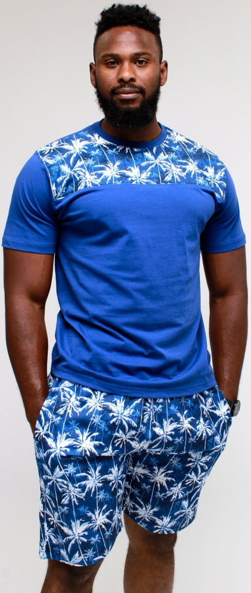 Størrelsesguide - Kam Jeans 5002 Palm Tree Panel Tee And Short Set Electric Blue
