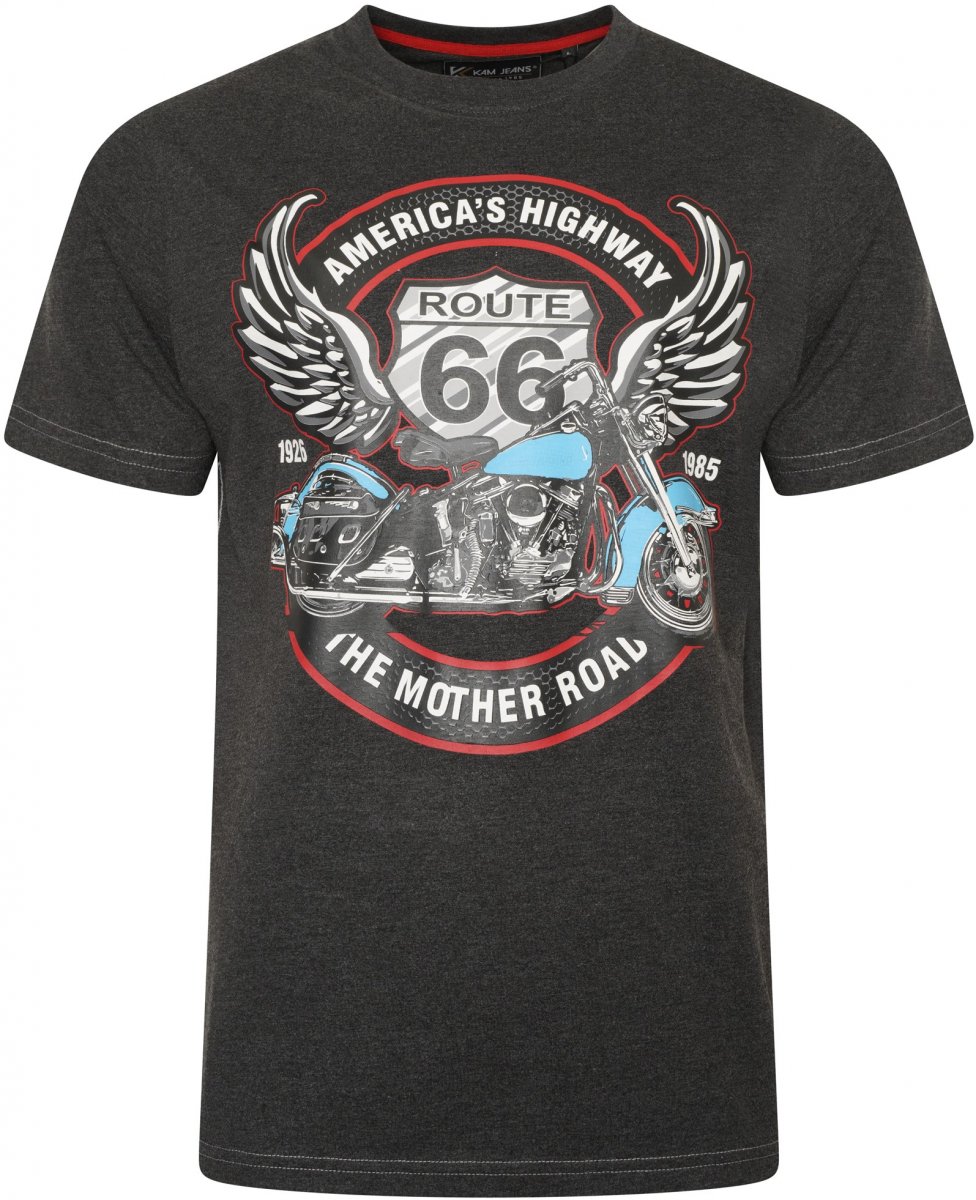 Størrelsesguide - Kam Jeans 5755 Route 66 Motorbike Print T-Shirt Charcoal Marl