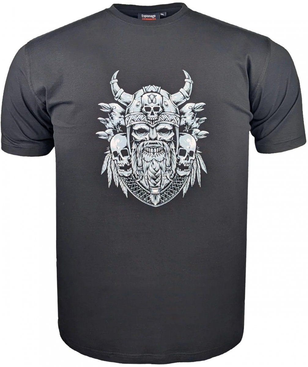 Størrelsesguide - Espionage T441 Viking Skull Print T-Shirt Black