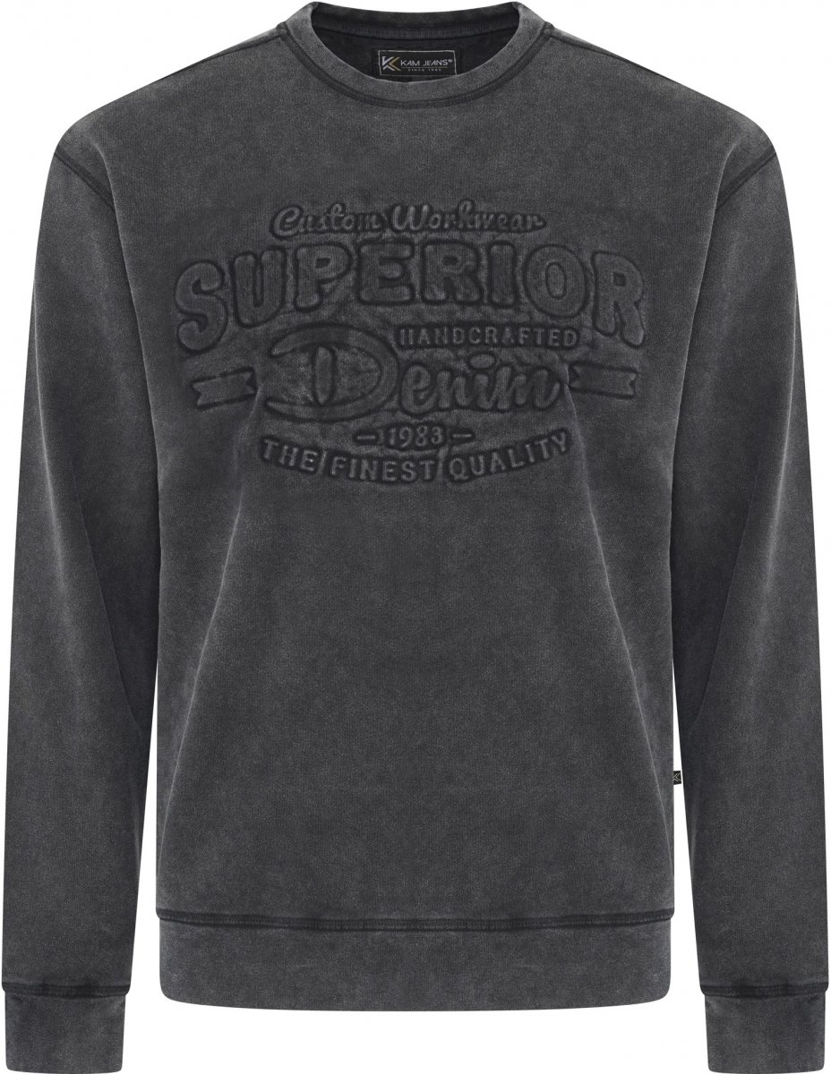 Størrelsesguide - Kam Jeans 7065 Crew Neck Washed Embossed Sweatshirt Black TALL SIZES