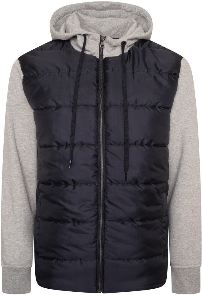 Størrelsesguide - Kam Jeans KV135 Quilted Zip Thru Hoody with Padded Body & Jersey Sleeves Navy TALL SIZES